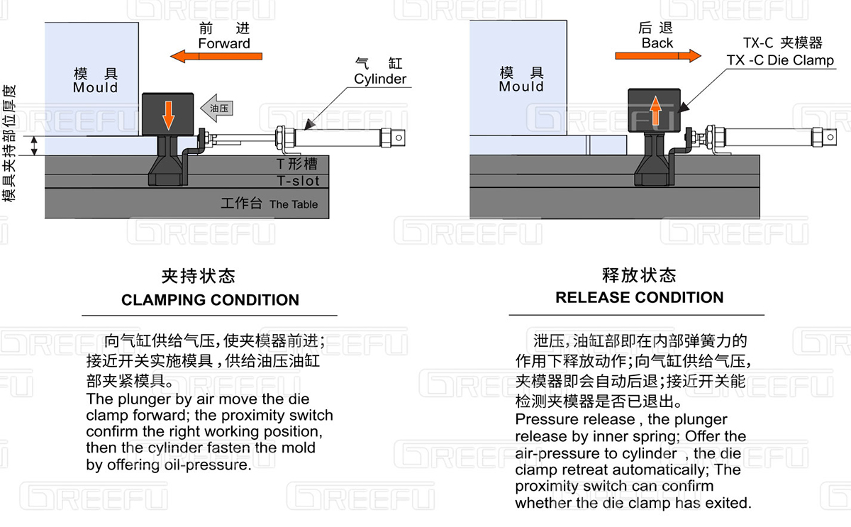 * 需根據(jù)貴司使用模具夾持部位厚度及T形槽尺寸,制作夾模器,相關(guān)參數(shù)詳見參照表或來電咨詢