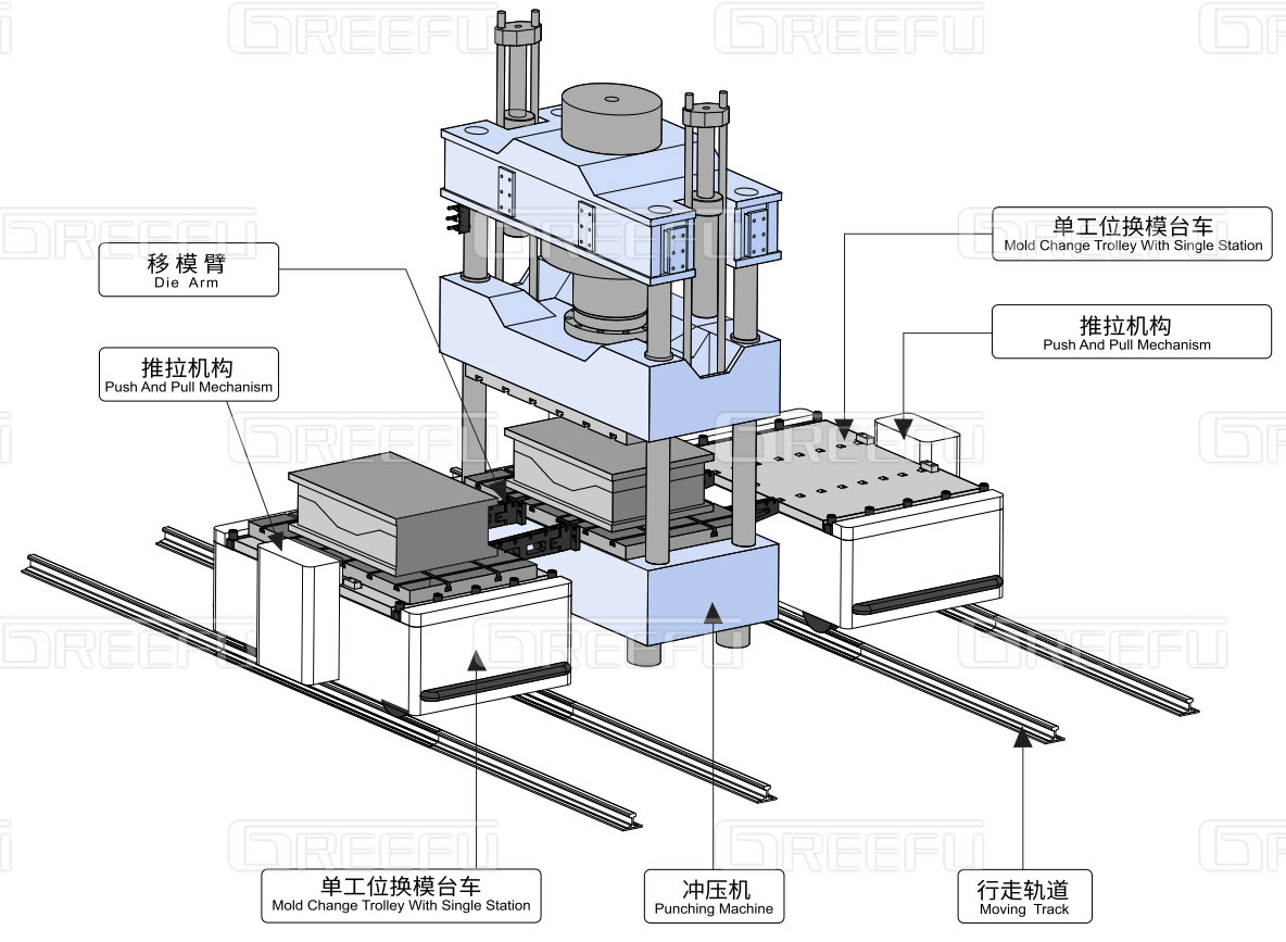 一對一 : 一臺沖壓機(jī)配備一臺換模臺車