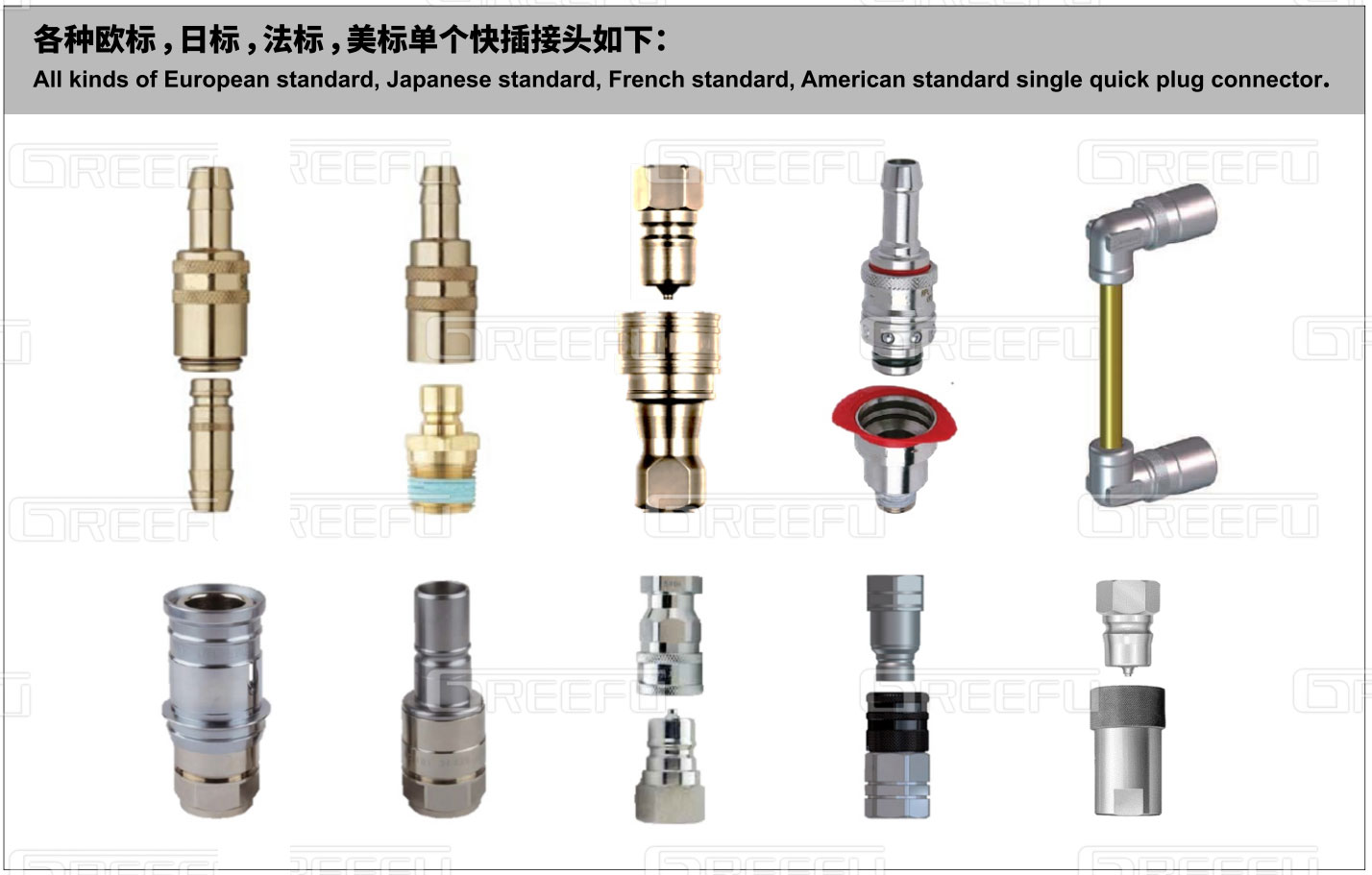 單路快插連接系統(tǒng):主體材質(zhì)采用耐振動(dòng)、耐沖擊性能好的特殊鋼。有外螺紋型和內(nèi)螺紋型,壓力損失少,適應(yīng)于油壓機(jī)。
